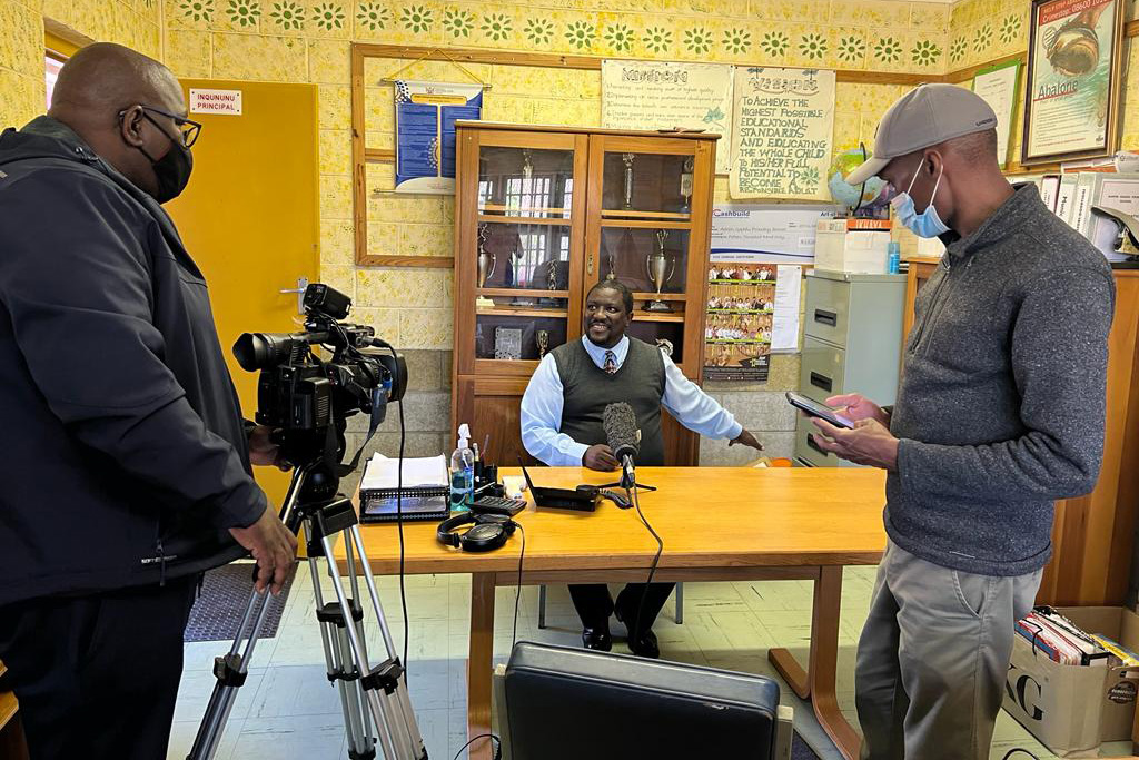 - Mr Mtywaru conducts a television interview.